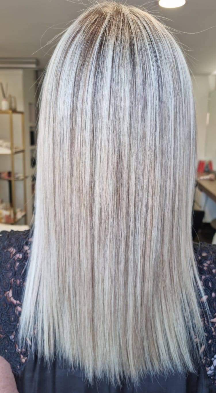 Een super mooi resultaat, maar het minst onderhoudsvriendelijk. Het haar zal regelmatig moeten worden bijgewerkt, wat maakt dat deze behandeling 3 tot 4 x per jaar moet ingepland worden. De kleur kan tussendoor worden opgefrist met een toner.
